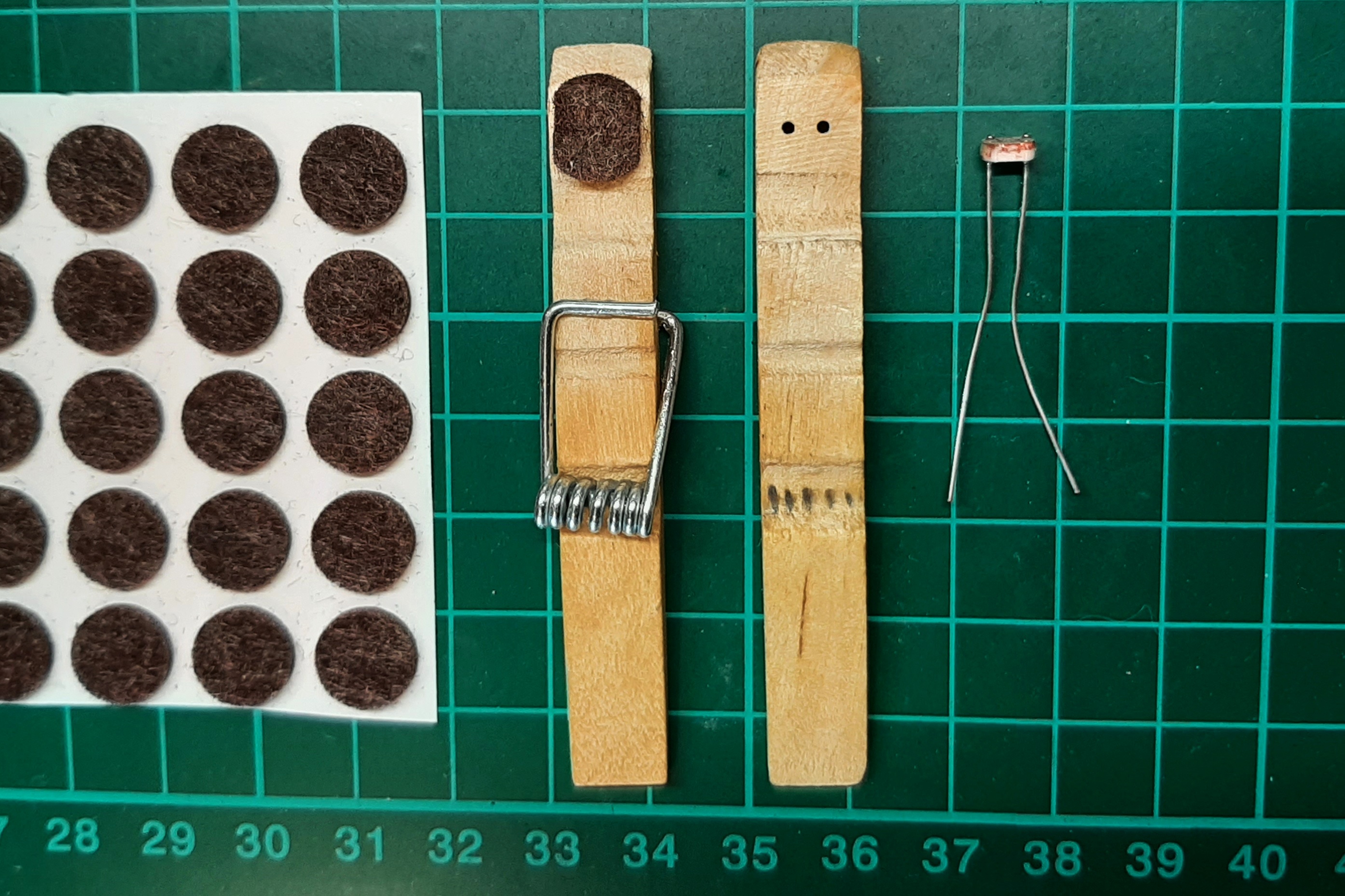 -To make place for the LDR inside the clothes pin, remove a bit of wood using a wood-file.