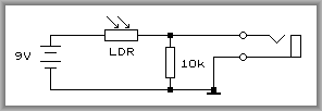 Needs just one (30 cent) Light Dependant Resistor (LDR), no other electronics or a supply.